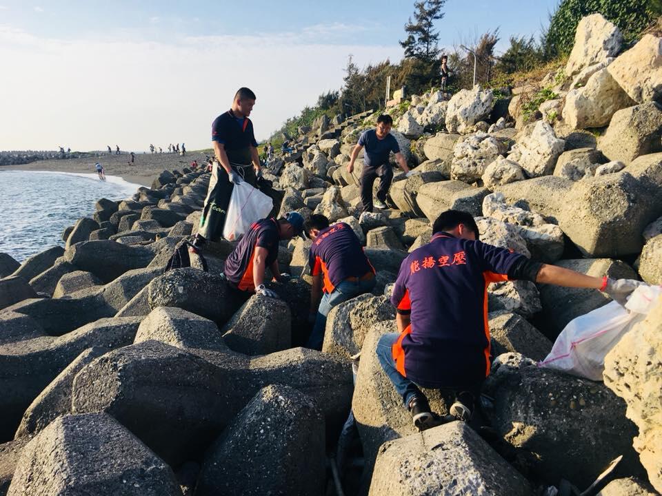 能揚葉總帶著夥伴們一同來到高雄旗津海邊響應淨灘活動